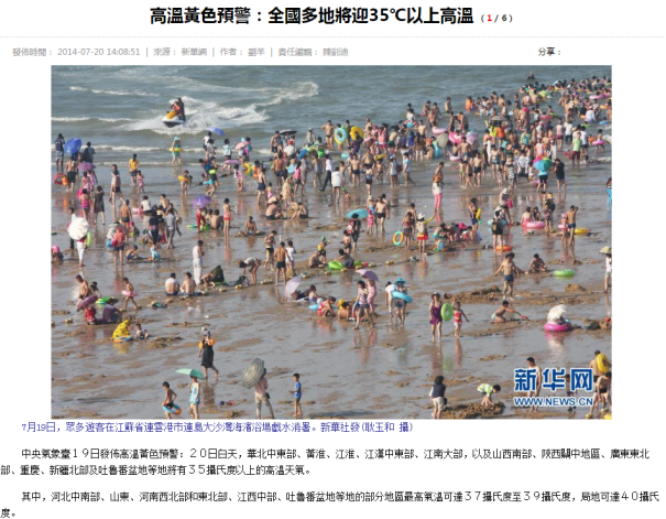 八月驕陽似火,進入三伏天,全國各地紛紛開啟了鐵板烤模式,多地氣溫高達35℃,南方地區出現大范圍持續高溫天氣。各地關于高溫的報道層出不窮,“避暑游每天10萬人入滇躲陰涼”,“全國多地將迎35℃高溫”,“非洲小哥在中國被曬到中暑”……中央氣象局提醒,盡量避免午后高溫時段的戶外活動。